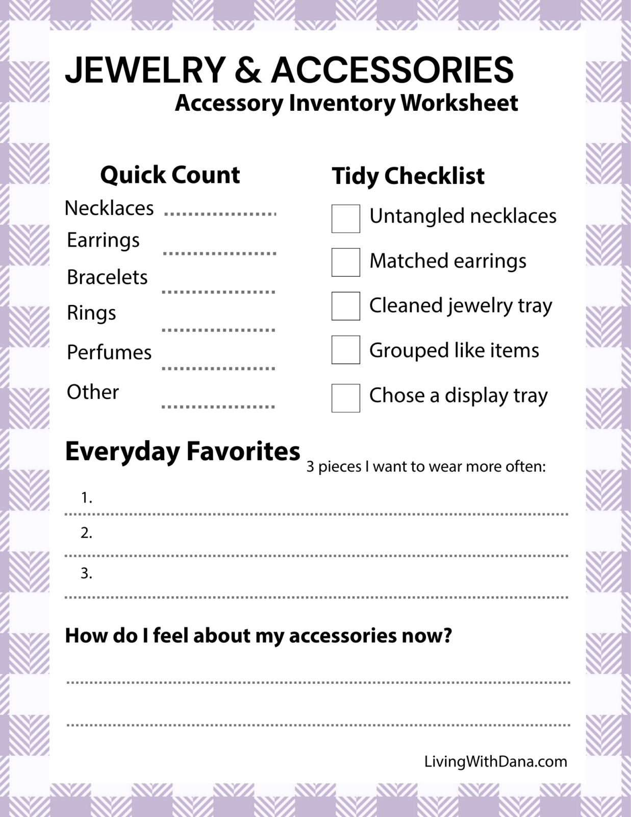 Get this FREE downloadable worksheet I created to help with your organizing, cleaning and decluttering tasks: